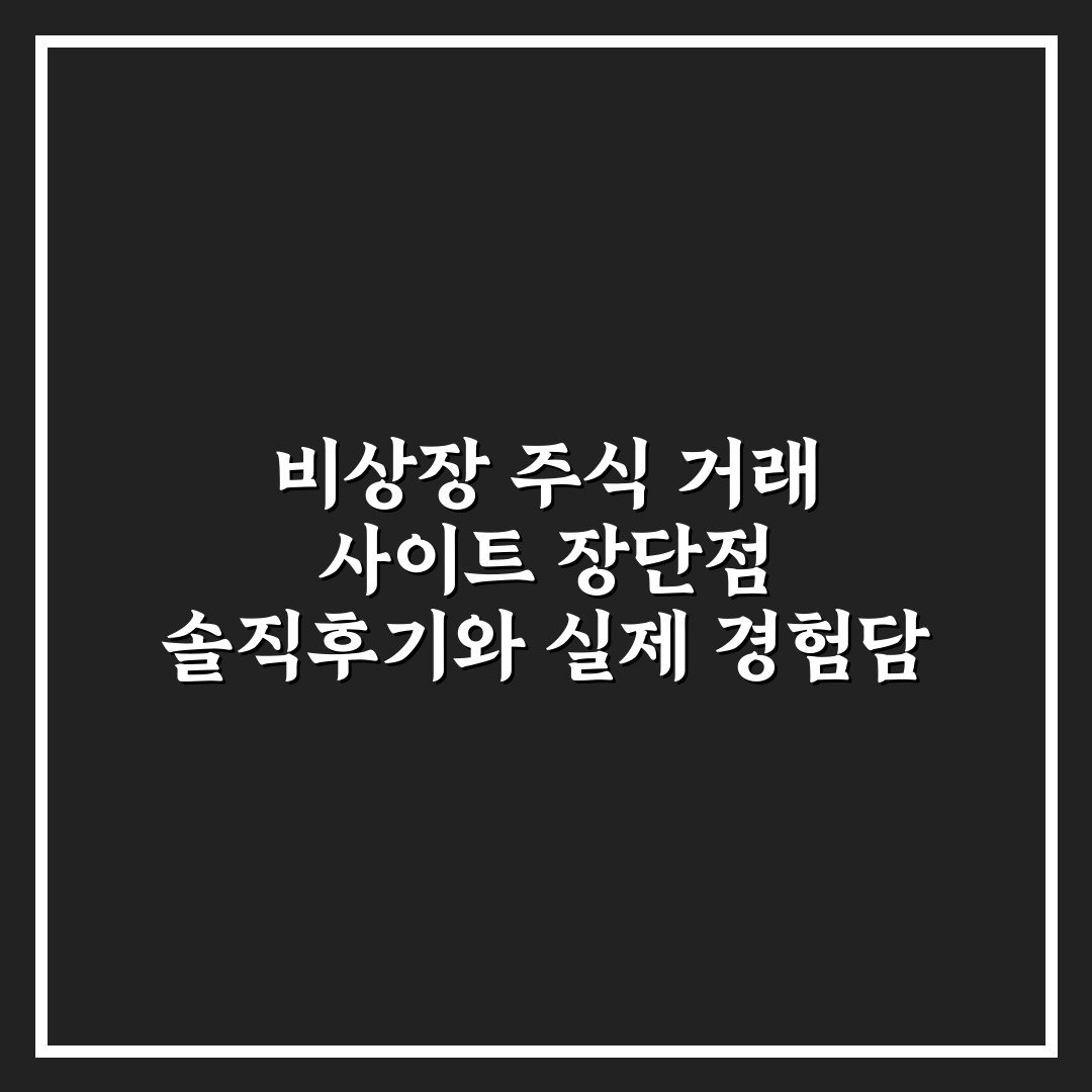 비상장 주식 거래 사이트 장단점 솔직후기와 실제 경험담 2026년 03월 28일 작성자: 와우 비상장 주식 거래 사이트 장단점과 실제 경험을 솔직하게 공유합니다. 안전한 거래를 위한 팁도 확인해보세요.