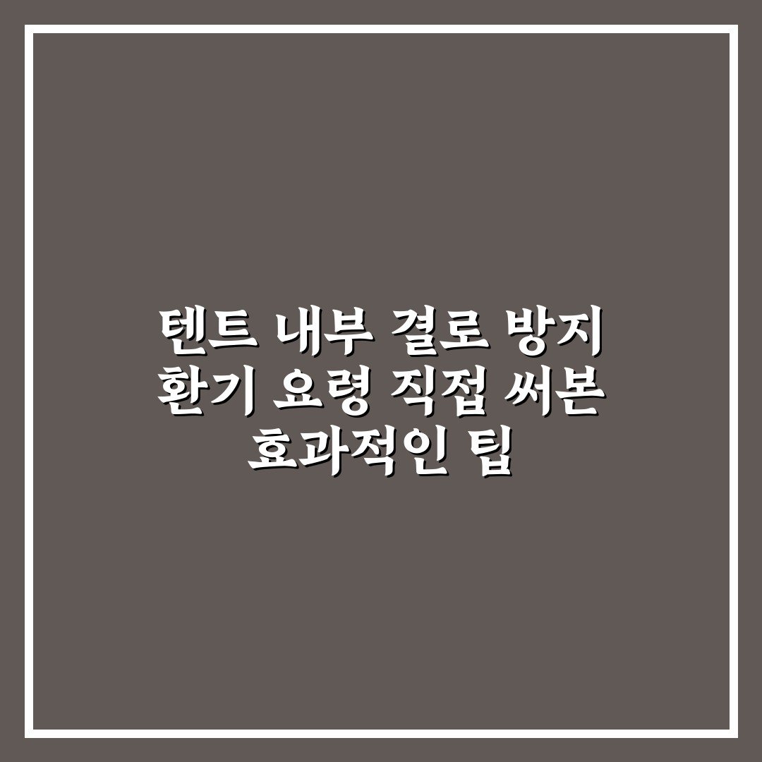 텐트 내부 결로 방지 환기 요령 직접 써본 효과적인 팁 2026년 03월 26일 작성자: 와우 텐트 내부 결로 방지 환기 요령을 소개합니다. 직접 써본 실용적인 방법으로 쾌적한 캠핑 환경을 만들어 보세요.