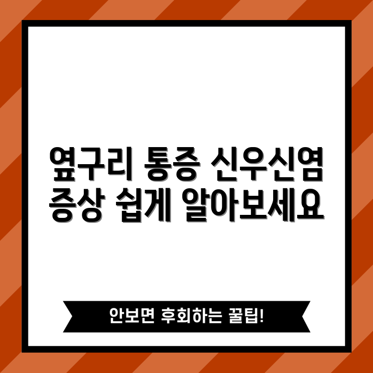 옆구리 통증을 체크하세요 옆구리 통증(결림)은 다양한 원인으로 발생할 수 있으며, 특히 신우신염이 의심될 때 주의 깊게 살펴봐야 합니다. 신우신염은 신장과 요로의 감염으로 인해 발생하며, 이와 관련된 통증 증상에 대해 알아보겠습니다. 주요 증상 신우신염과 관련된 옆구리 통증의 특징을 다음과 같이 정리할 수 있습니다: 증상 설명 통증 위치 양쪽 또는 한쪽 옆구리 부위에서 통증 발생 통증 강도 … 더 읽기